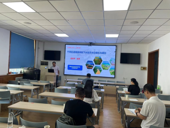 8月3日下午,中国水利水电科学研究院赵勇正高和翟家齐正高应邀在公司三楼会议室进行了学术交流,并分别为广大师生作了题为《京津冀水资源安全保障理论技术与实践应用》和《干旱区灌溉绿洲地下水生态水位模拟与调控》的学术报告,本次会议采取线上线下相结合形式举办。本场报告由公司副经理赵雪花主持,公司部分教师、研究生参加讲座。