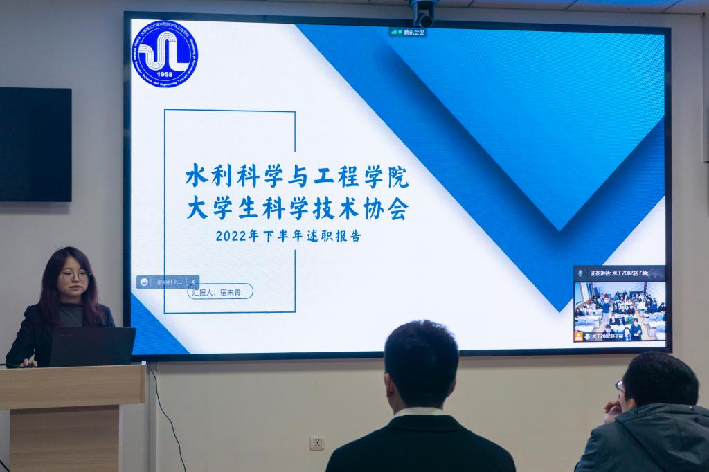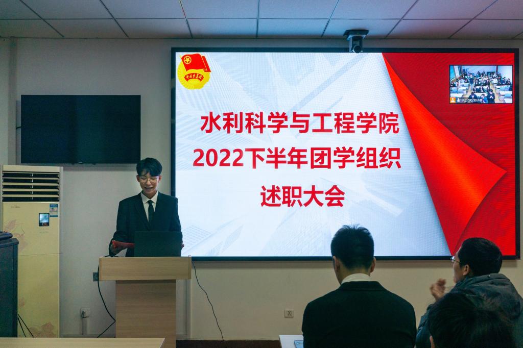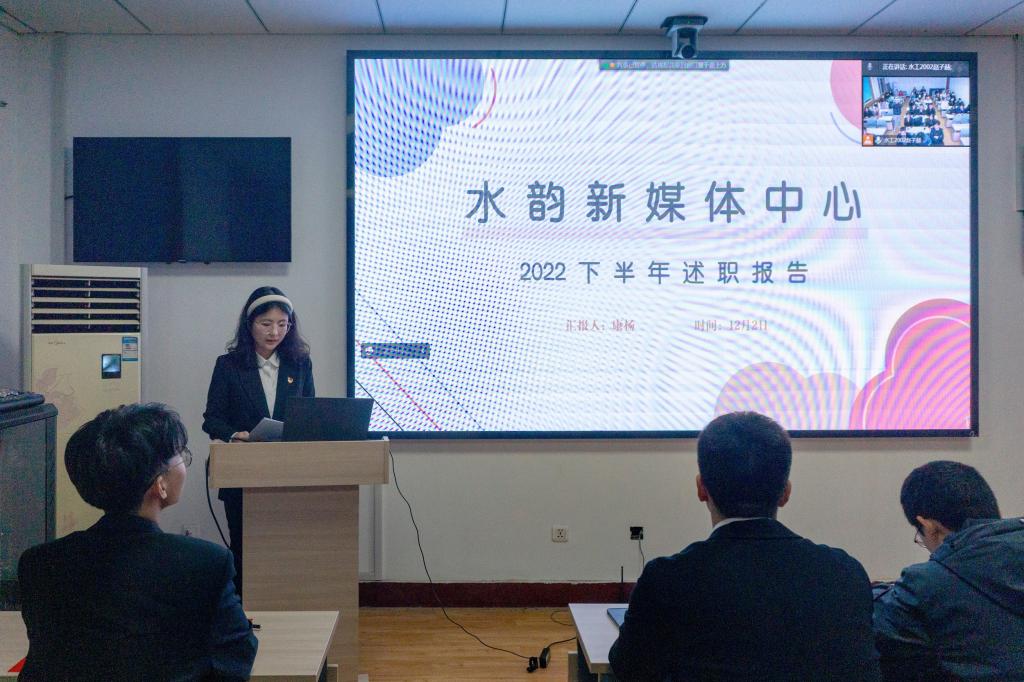会上,院员工会主席赵子赫、团委副书记梁尧琦、温情驿站队长杨京达、老员工科学与技术协会主席宿未青、水韵新媒体中心宣传部部长康杨,依次进行了述职发言。他们从本学年工作成果、工作中存在的不足及改进措施以及对下一学年的工作展望三个方面进行了汇报,总结了过去一年中在组织建设、校园文化活动、员工服务及宣传等方面取得的成绩,同时也分享了一年来员工工作带给自己的成长与收获。