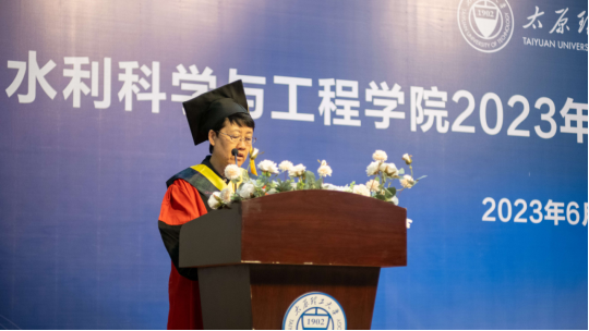 拨穗礼成,逐梦远航。在全场的掌声下,肖娟教授、郭向红教授、郝瑞霞教授、赵喜萍教授、赵雪花教授等5名老师为在场的每一位毕业生拨正流苏并合影留念。学位授予仪式结束后,教师代表陈军锋老师上台发言,希望同学们牢记党的教诲,立志民族复兴,不负韶华,不负时代,不负人民,在青春的赛道上奋力奔跑。随后,毕业生代表安佳彤上台发言,向母校呵护栽培之泽、师长引航教诲之恩、亲友陪伴关爱之情深表谢意。她表示,将心怀“国之大者”,既仰望星空、志存高远,又脚踏实地、久久为功,做有理想、敢担当、能吃苦、肯奋斗,勇挑重担,不畏艰险的水利人。